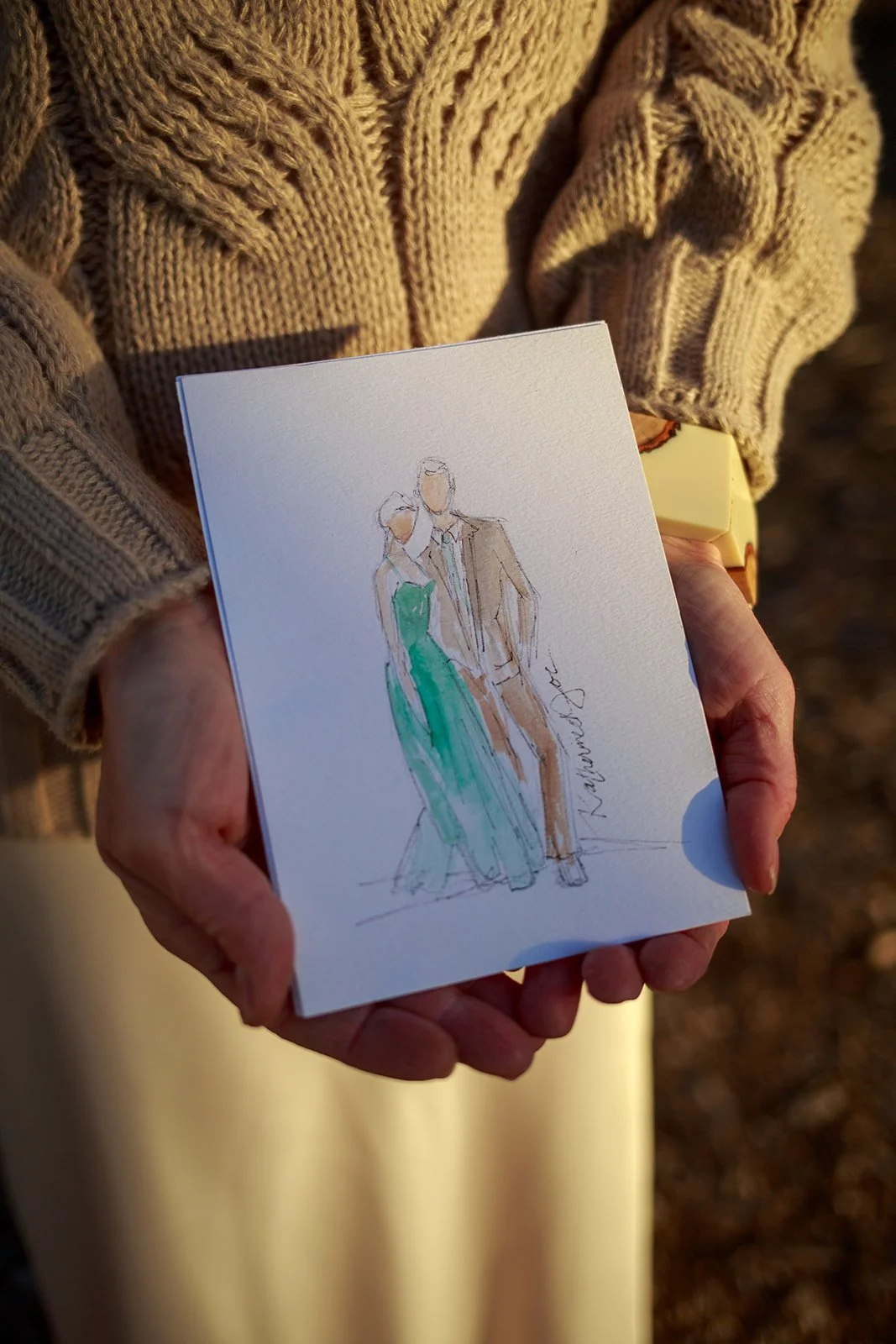 The nature of oil painting requires proper drying, layering of details and a varnish protective coating, so you can expect Bernadette to put an additional your painting will be ready for pick up or shipping 6-8 weeks after your special day. Your painting will be completed on a wooden panel, ready to be dropped into a frame. It is also possible for Bernadette to frame the painting for you.